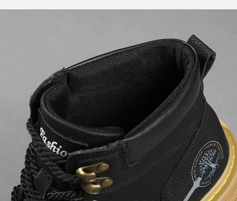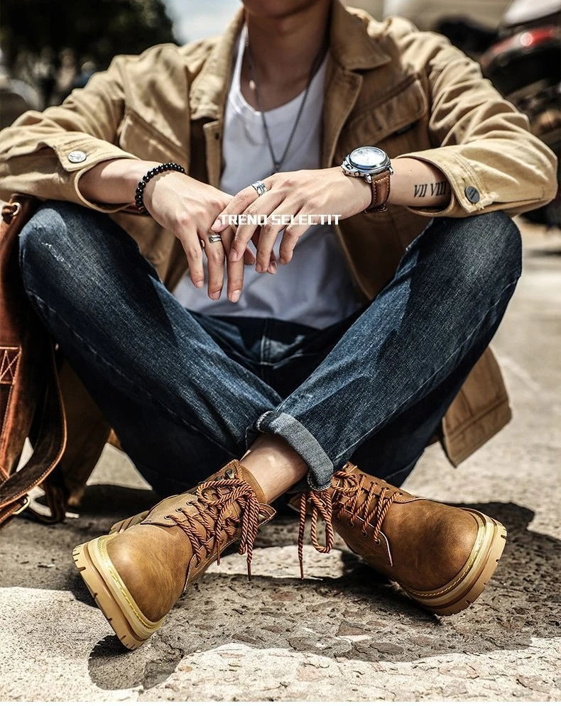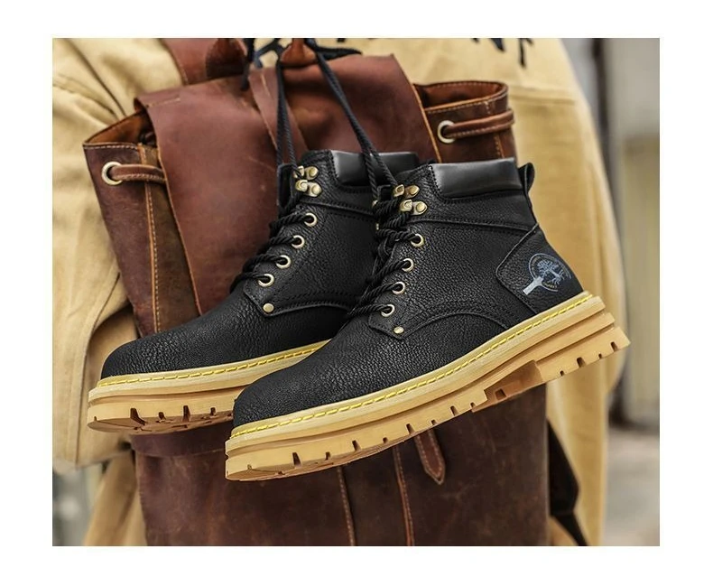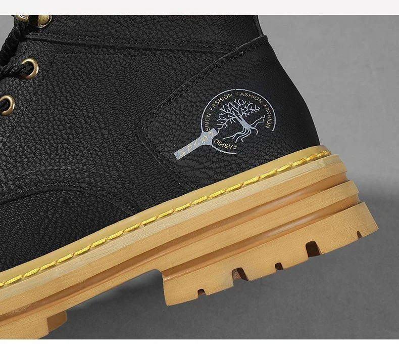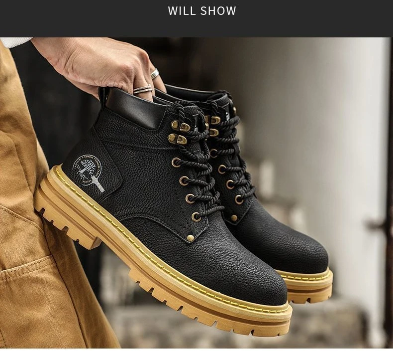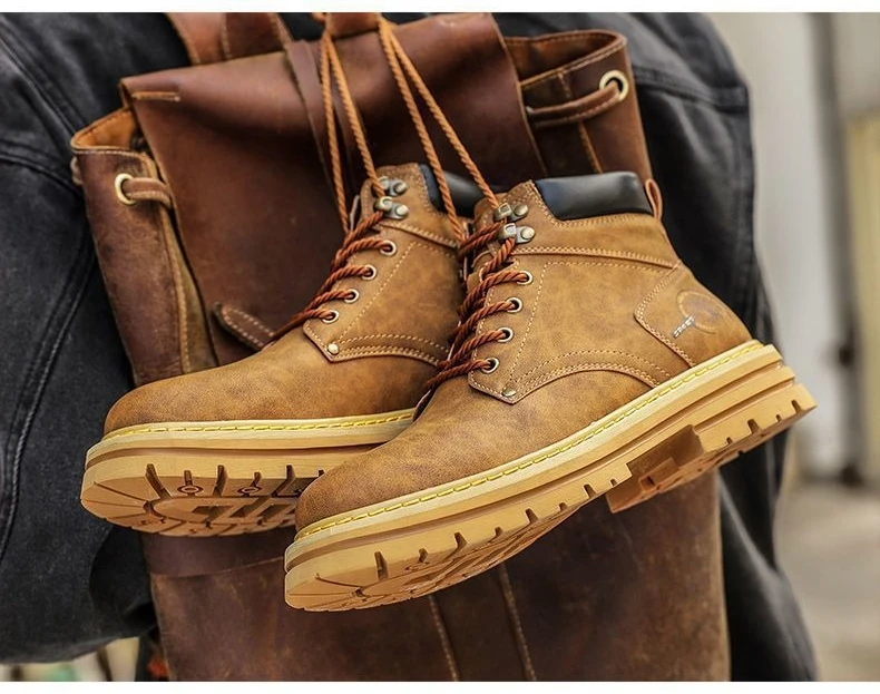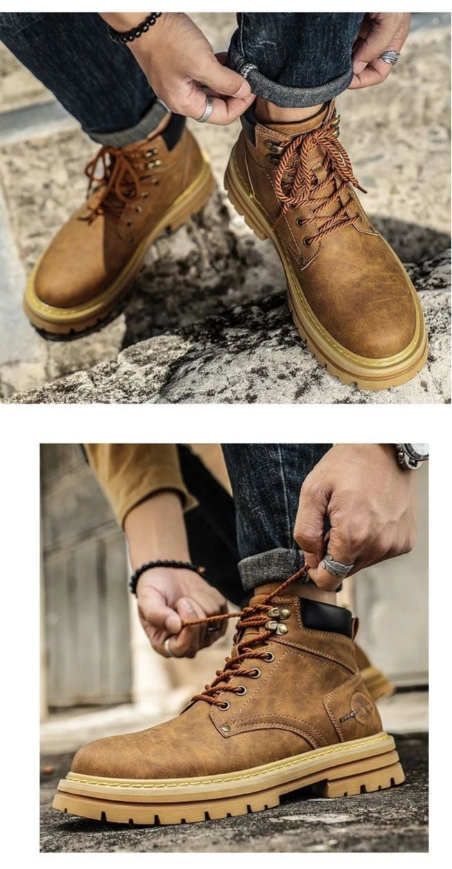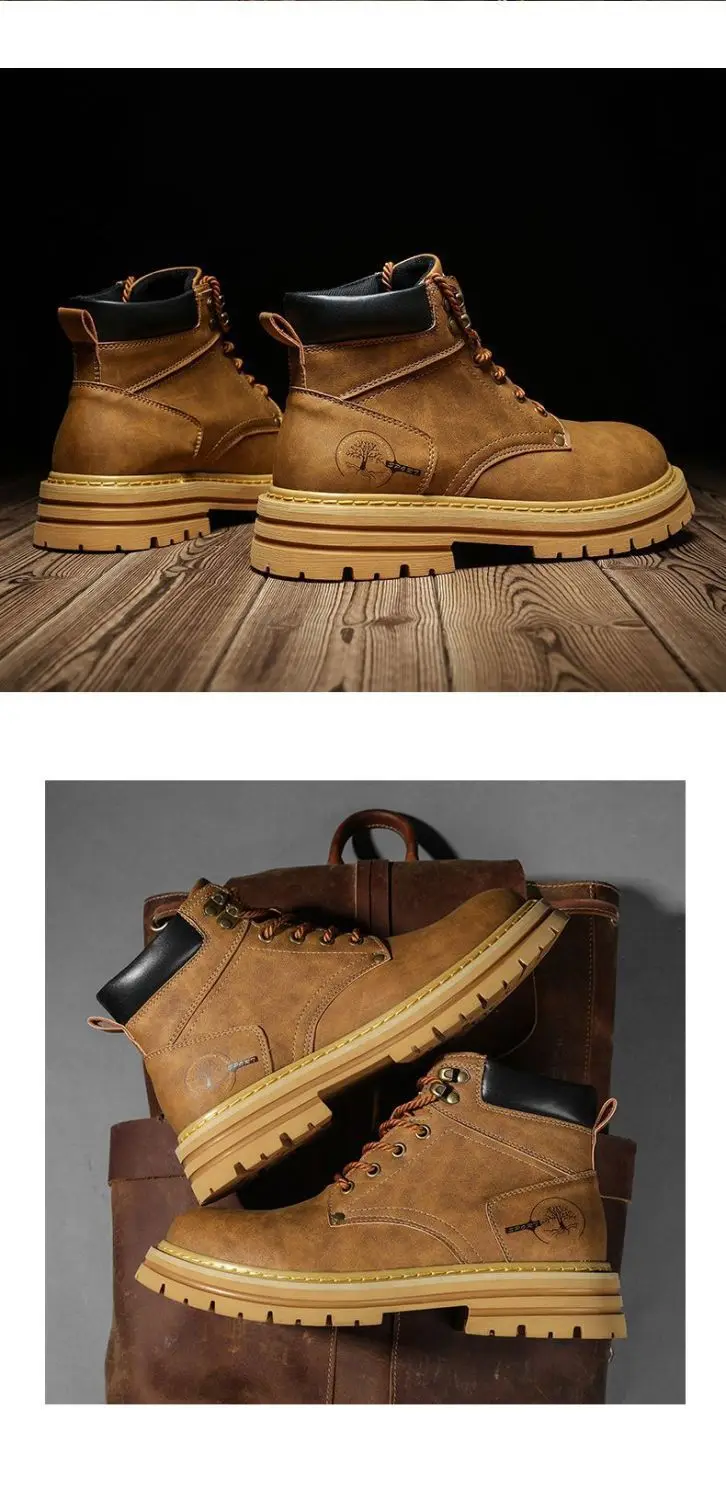 New High Quality Men's Leather Boots Trend Men's Motorcycle Boot Outdoor Non Slip Work Boots Comfortable Platform High-Top Boots